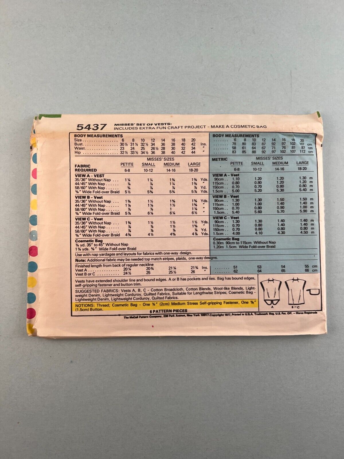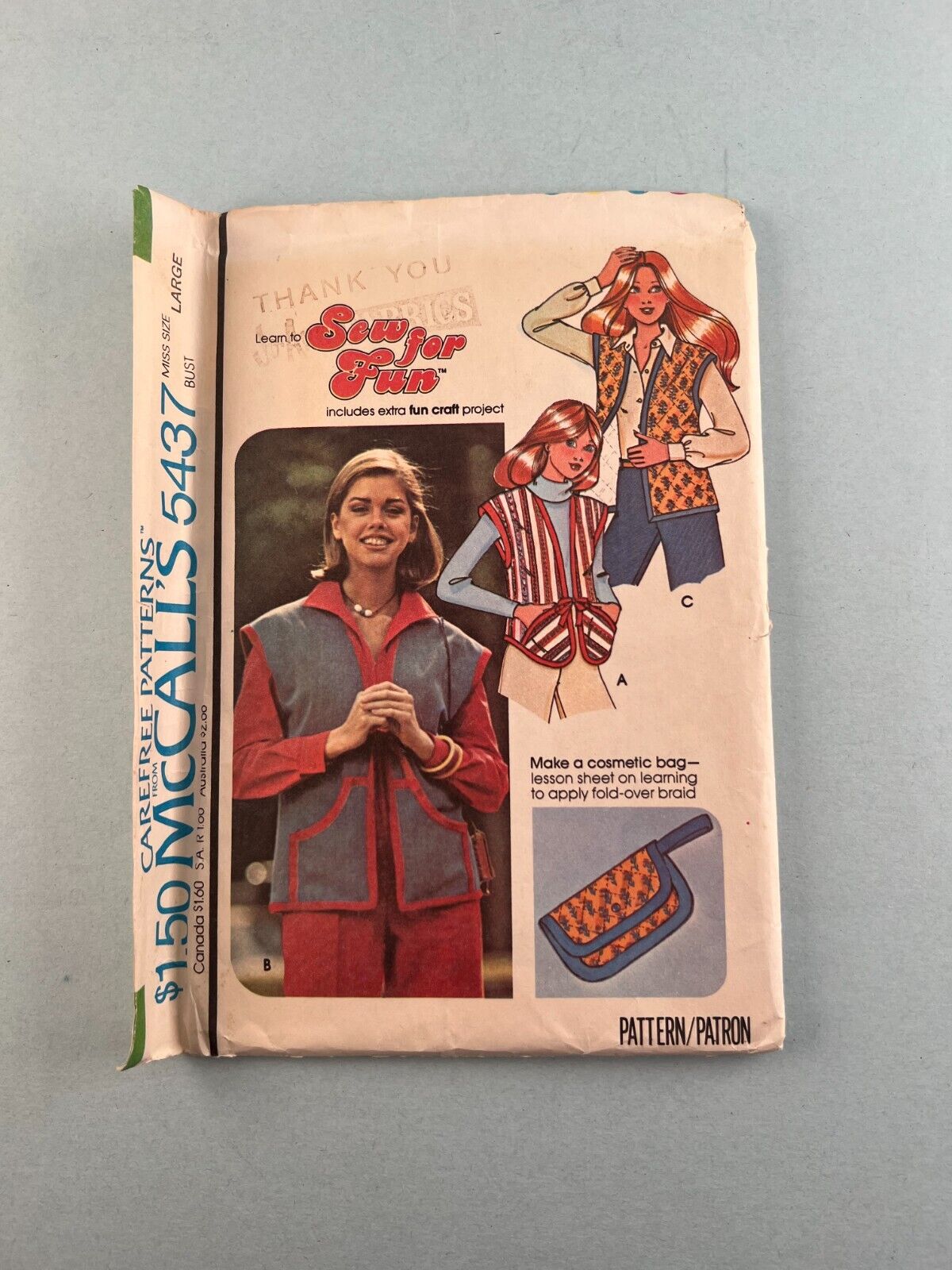 McCall's Carefree 5437 Vintage Sewing Pattern '77 Misses Set of Vests Size Large
