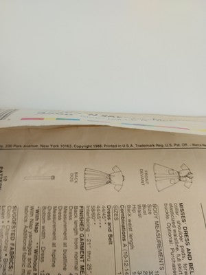McCall's Craft 3508 Vtg Sewing Pattern 1988 Cut Misses Dress & Belt Size A 10-14