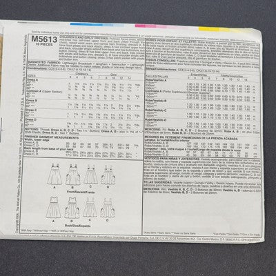 McCall's M5613 Sewing Easy Pattern 2008 Uncut Children's Girl Dress Size CCE 3-6