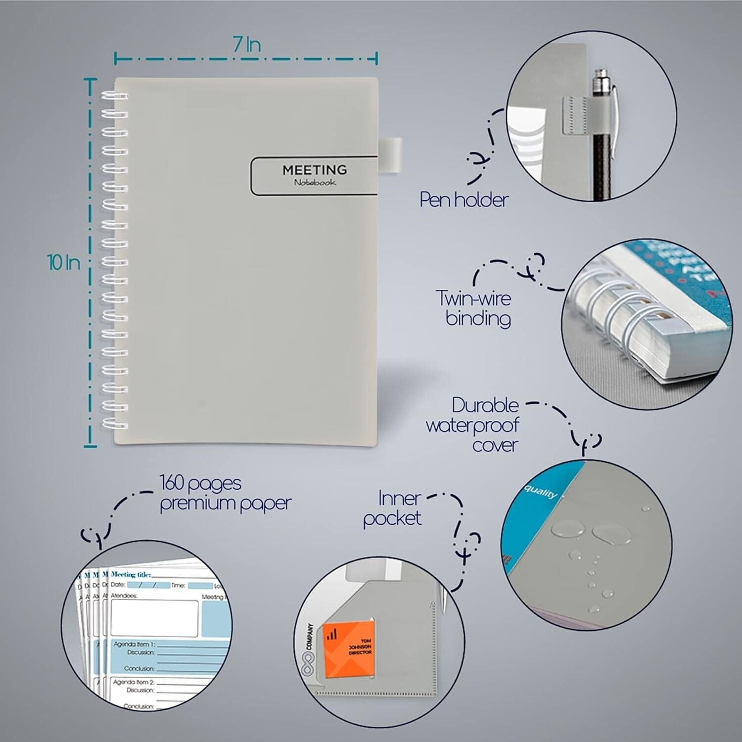 Meeting Notebook with plastic cover 160 pages 7"x10" Action Planner Table Of Con