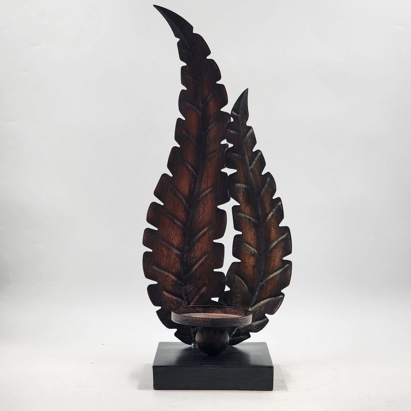 Metal Fern Floral Leaf Candle Holder Brown Holds Large 4" Pillar 19.5" Decor