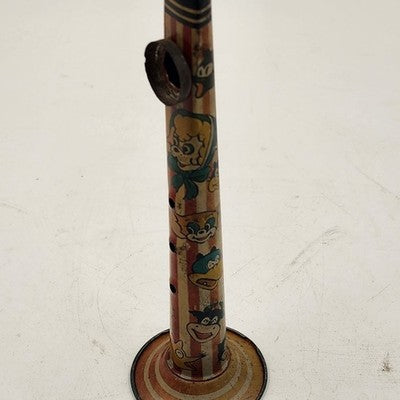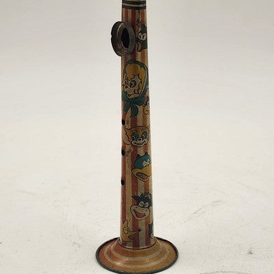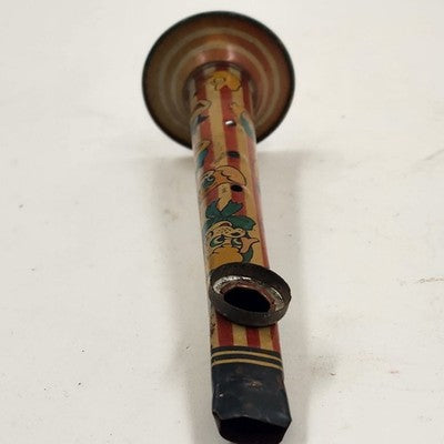 Step back in time with this playful vintage tin lithographed kazoo featuring colorful comic-style animal characters. A charming collectible or nostalgic gift, this metal kazoo is a delightful piece of musical and toy history.