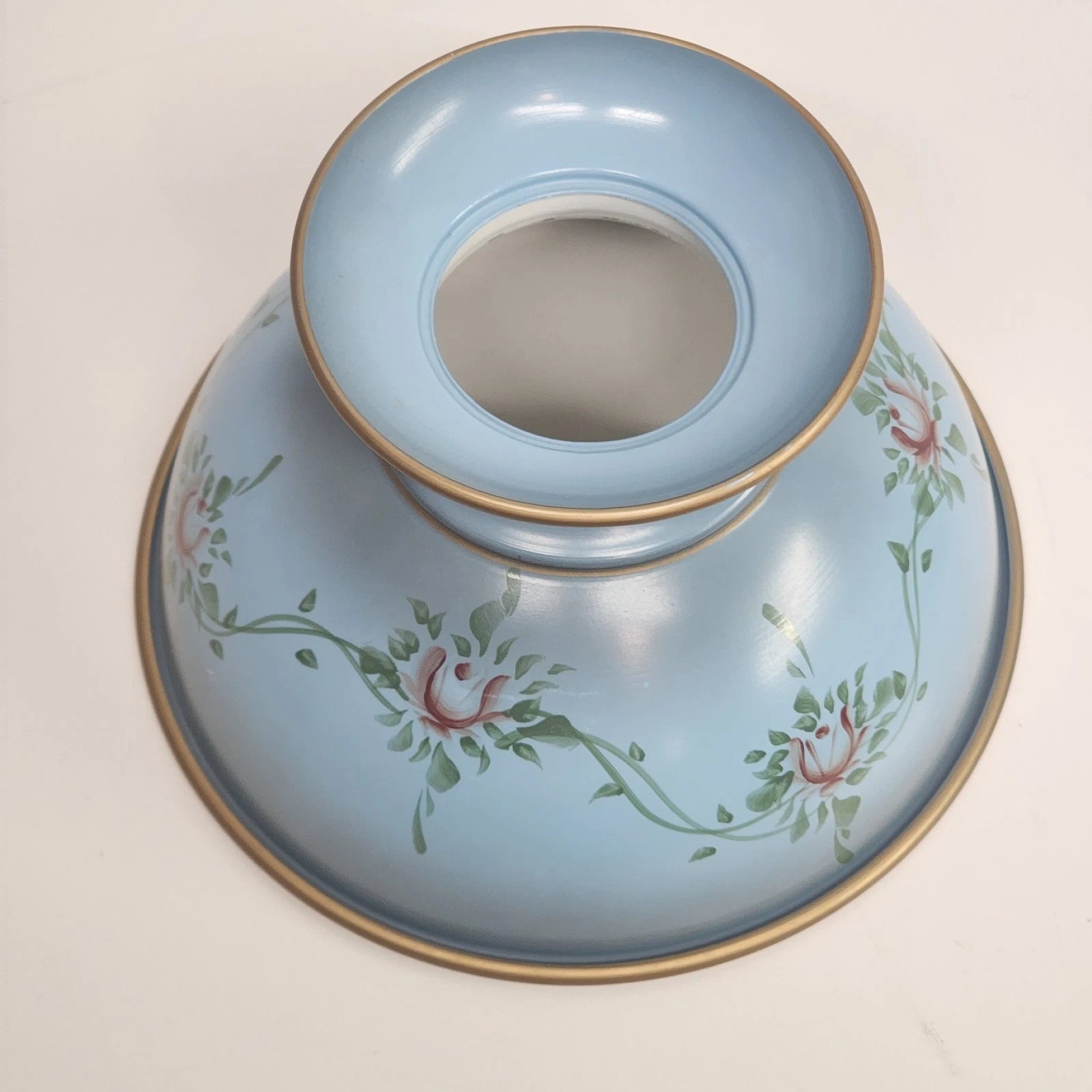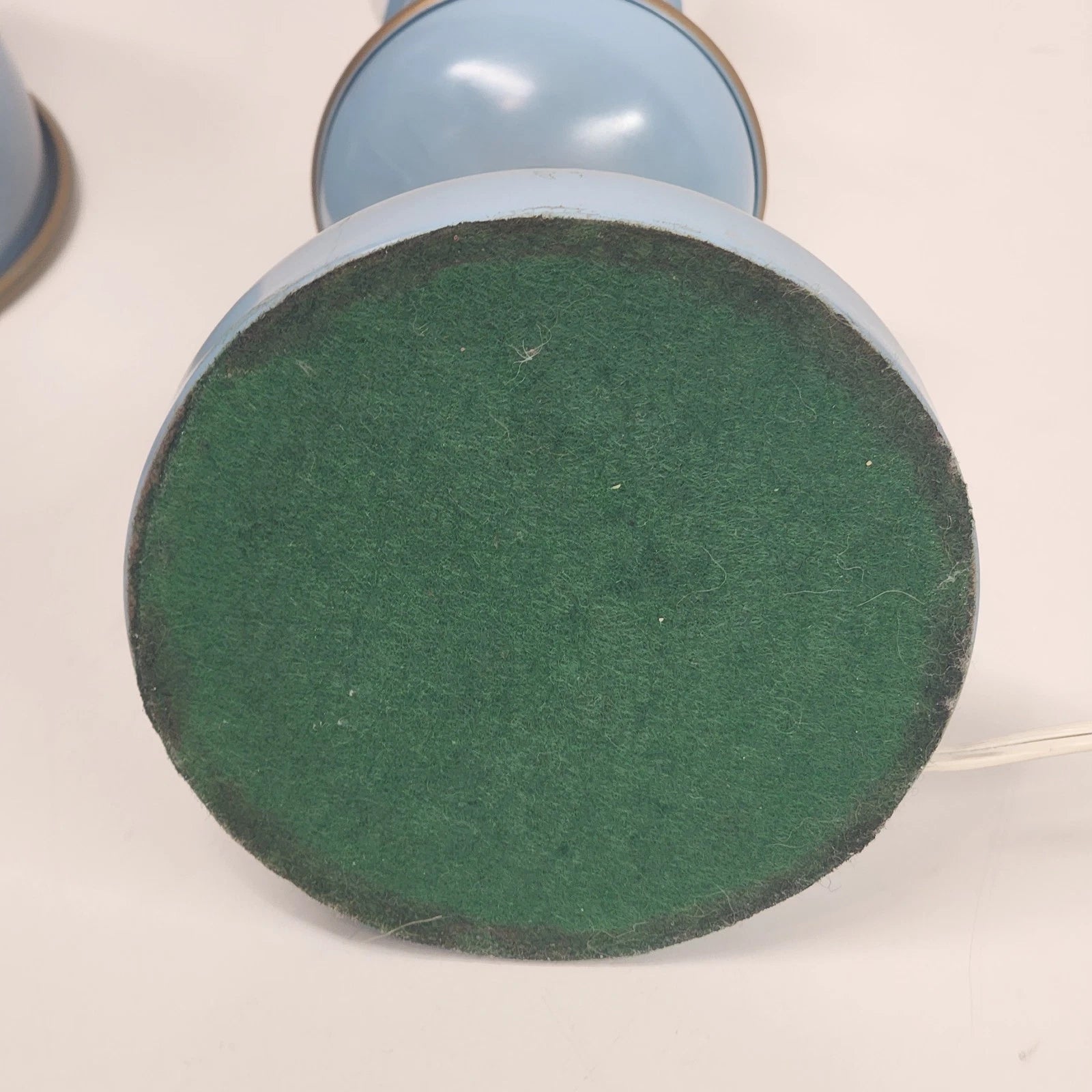 Metal Toleware Hurricane Lamp Glass Chimney MCM Desk Table Blue 18" Vintage
