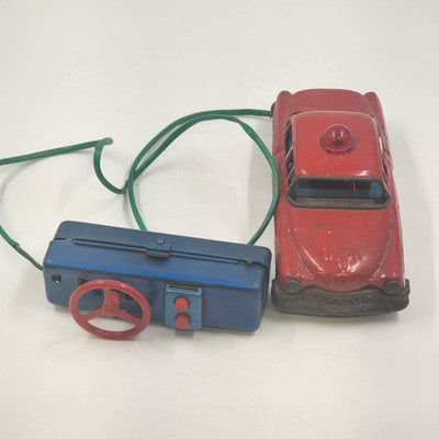 Metal Toy Police Car Red Light Electric Cable Controlled Not Working Japan 1955