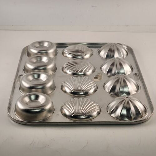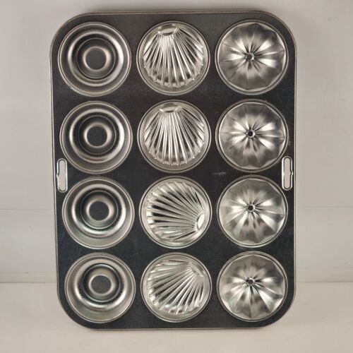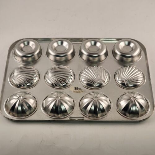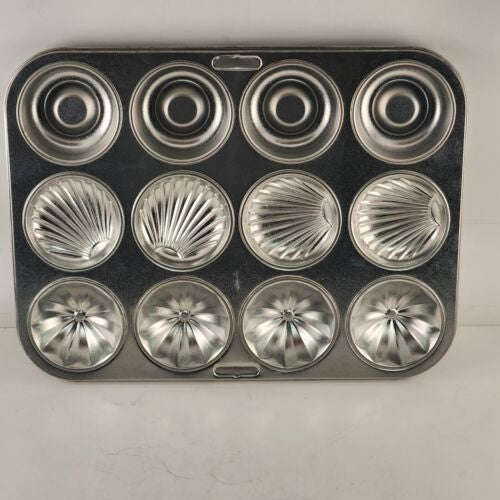 Elevate your baking with this metallic nonstick baking mold pan, perfect for creating uniquely shaped treats. Designed to bake 4 shell, 4 donut, and 4 ball-shaped goodies, this versatile pan is a must-have for creative bakers.