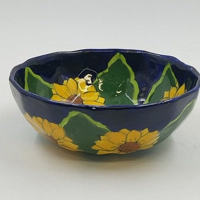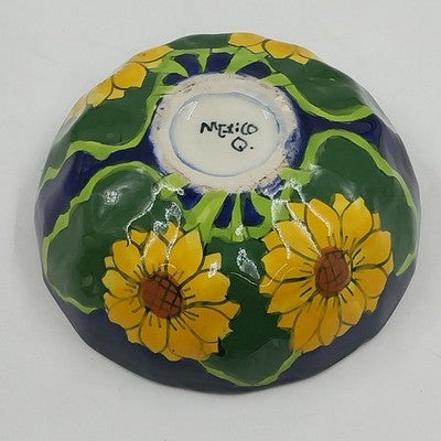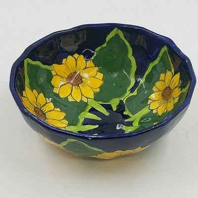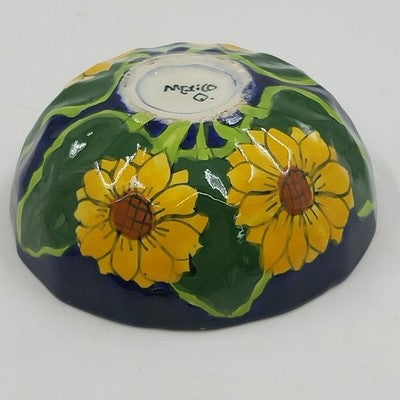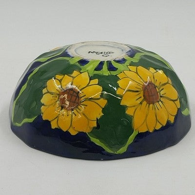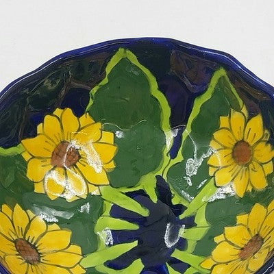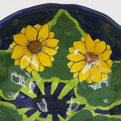 This vibrant Talavera serving bowl showcases a hand-painted sunflowers and leaf design, crafted in traditional Mexican folk art style. With its bold colors and unique artistry, this piece is perfect for serving, display, or adding a touch of cultural charm to your home décor.