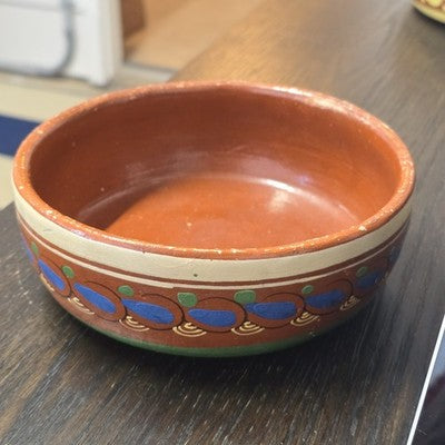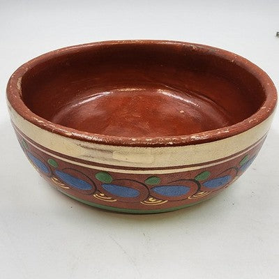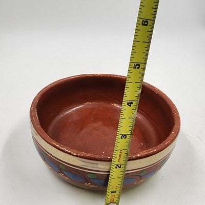 Beautiful Mexican terra cotta redware pottery bowl, hand painted with a rustic, primitive style. Perfect for display, collection, or functional use.