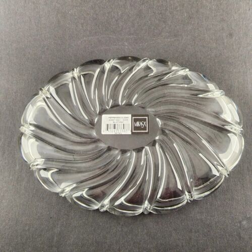 Mikasa Peppermint Clear Sweet Dish 9¼ Inch Oval Swirl Scallop Edge in Box S3503