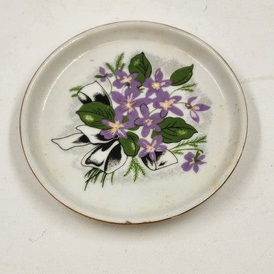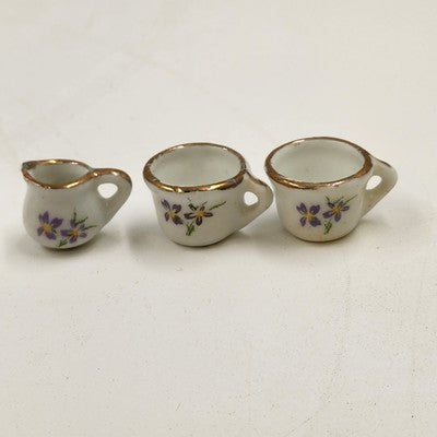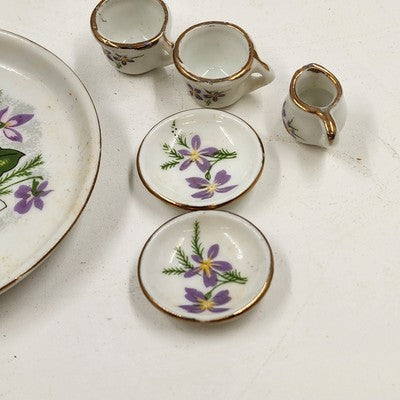 Miniature Tea Set for 2 White w/ Purple Lily Flowers & Gold Trim Vtg