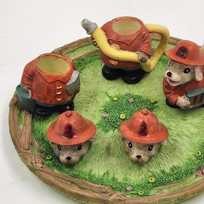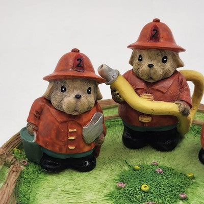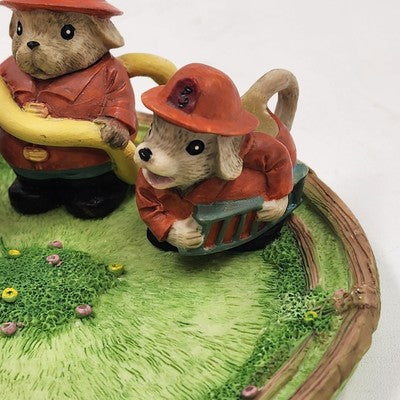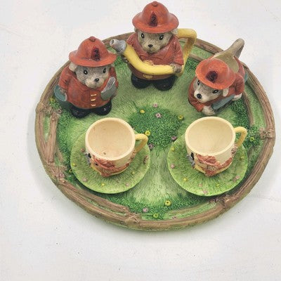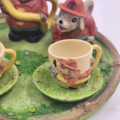 Miniature Tea Set 8pc Firefighter Dog 1993 w/ Box Vintage Ceramic China