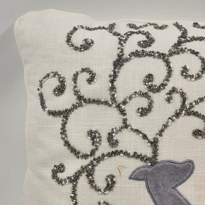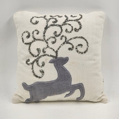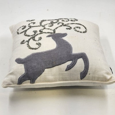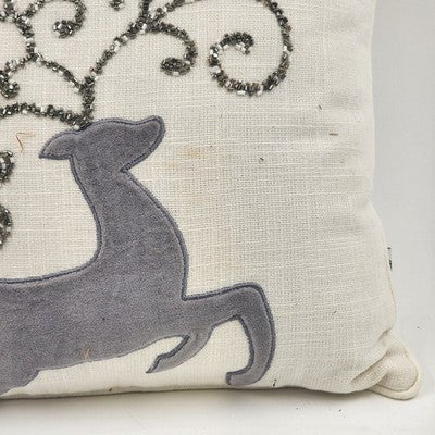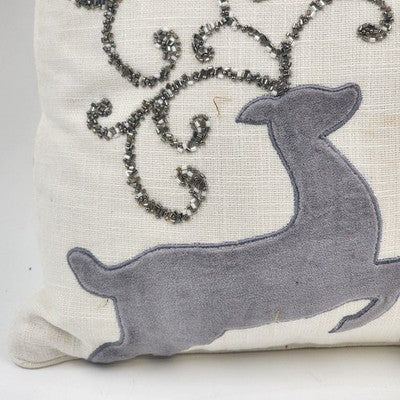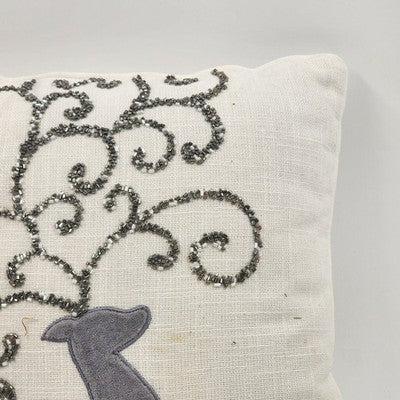 Mud Pie Pillow 13" Sq w Gray Beaded Bling Scrollwork Accent Christmas Reindeer