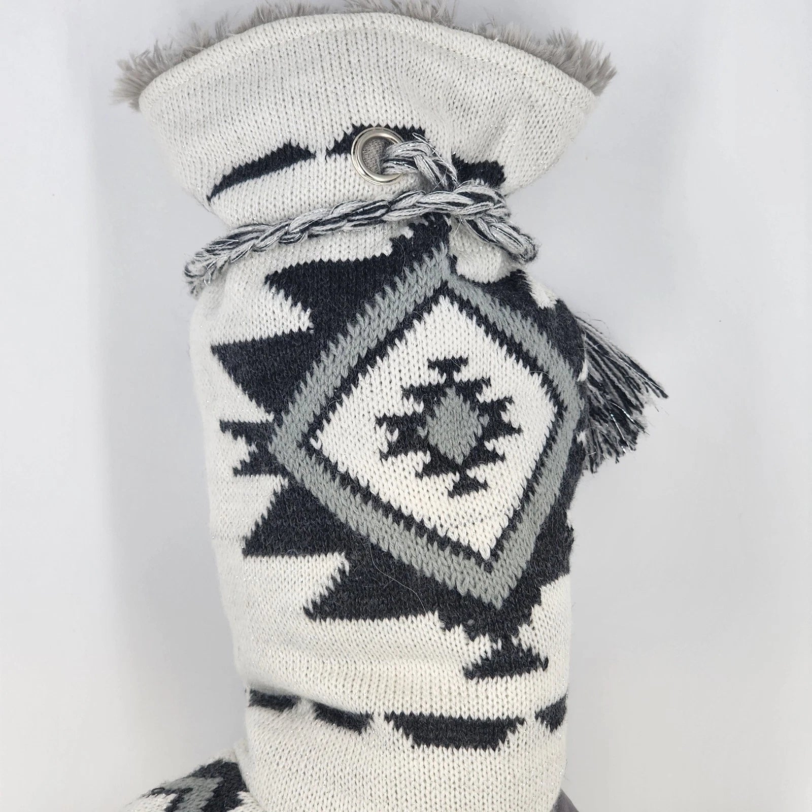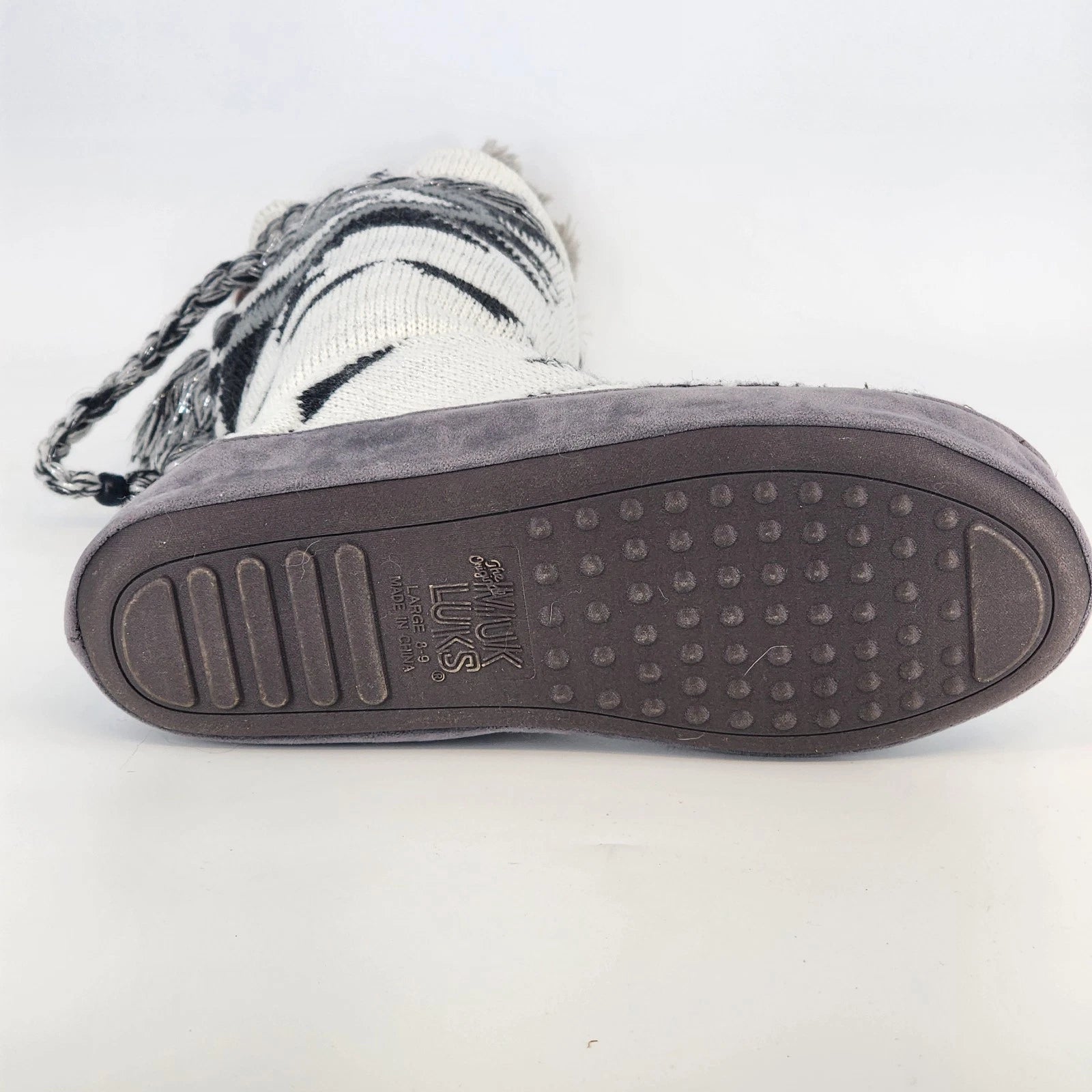 Muk Luks Women Slipper Boots Size 8-9 Knit Fair Isle Pattern Faux Fur Lined Grey