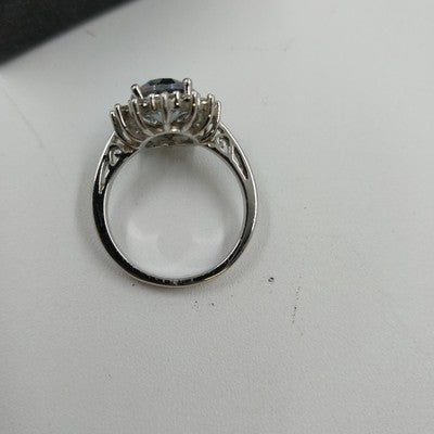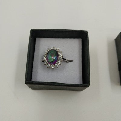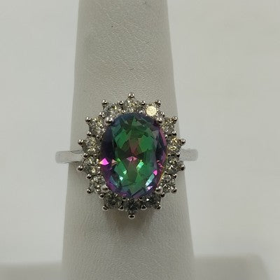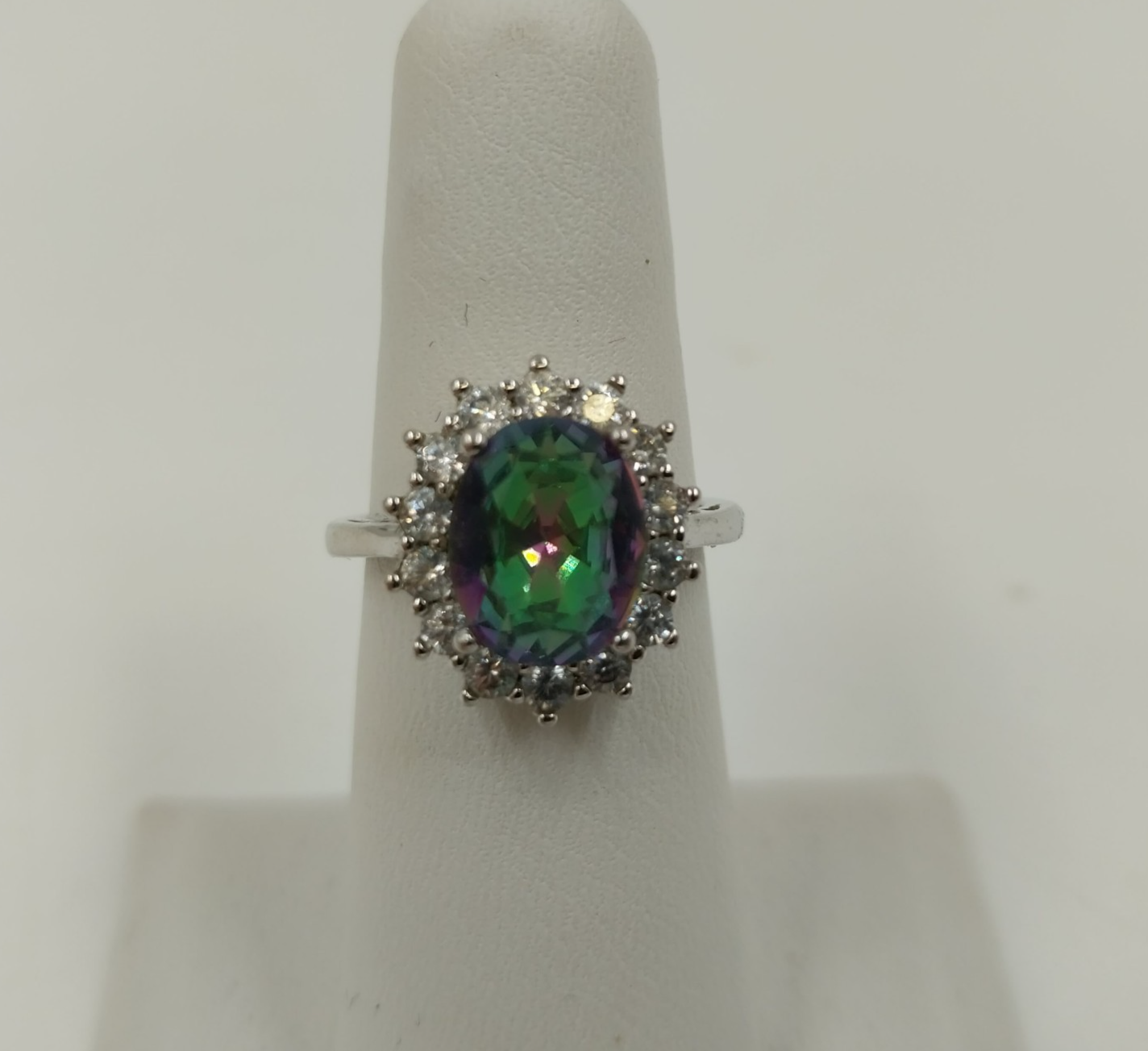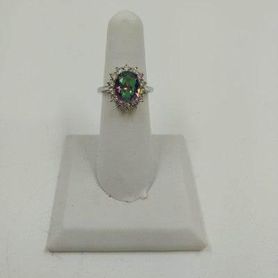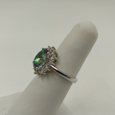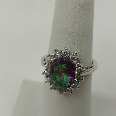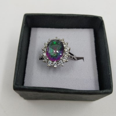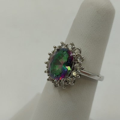Mystic Topaz & Rhinestone Statement Ring Sz 6 Silver Tone w/ Box