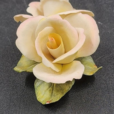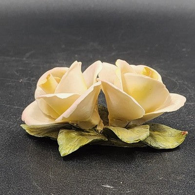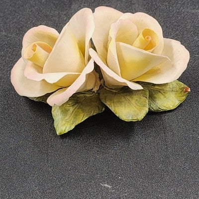 A stunning and delicate piece, this authentic Capodimonte porcelain features two blush-toned roses crafted with exquisite detail. Made in Italy and marked "Napoleon," it's a timeless collectible ideal for display or gifting.