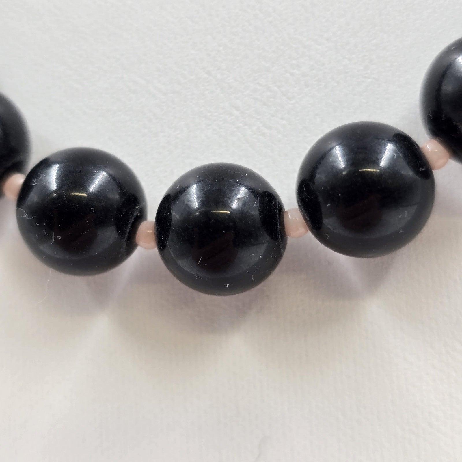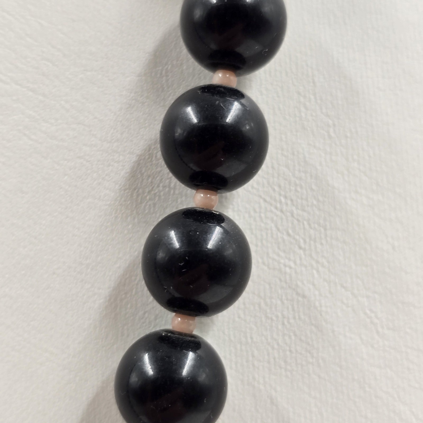 Necklace in Round Black Acrylic Beads with Pale Pink Bead Spacers 14.5"