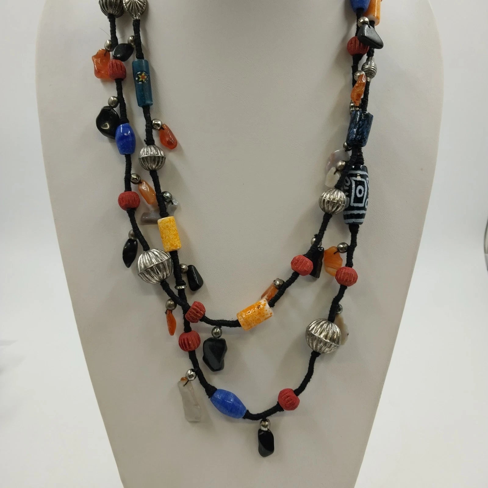 Necklaces Lot Beaded Chain Boho Multicolor Art Glass & Textured Black Orange