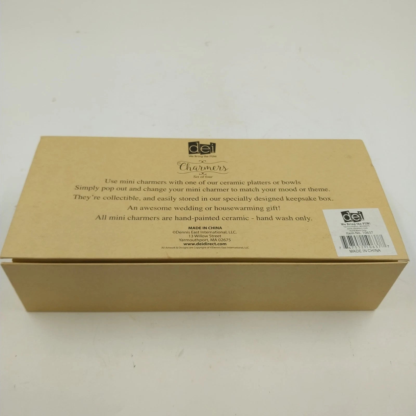 This is a brand new, unused set of DEI Hanukkah Charmers, perfect for adding a festive touch to your Hanukkah celebration or for use as unique wine/glass markers. The set includes four (4) mini hand-painted ceramic charms, each featuring a Hanukkah-themed design. They attach easily with silicone tips, making them a fun and practical addition to any gathering.