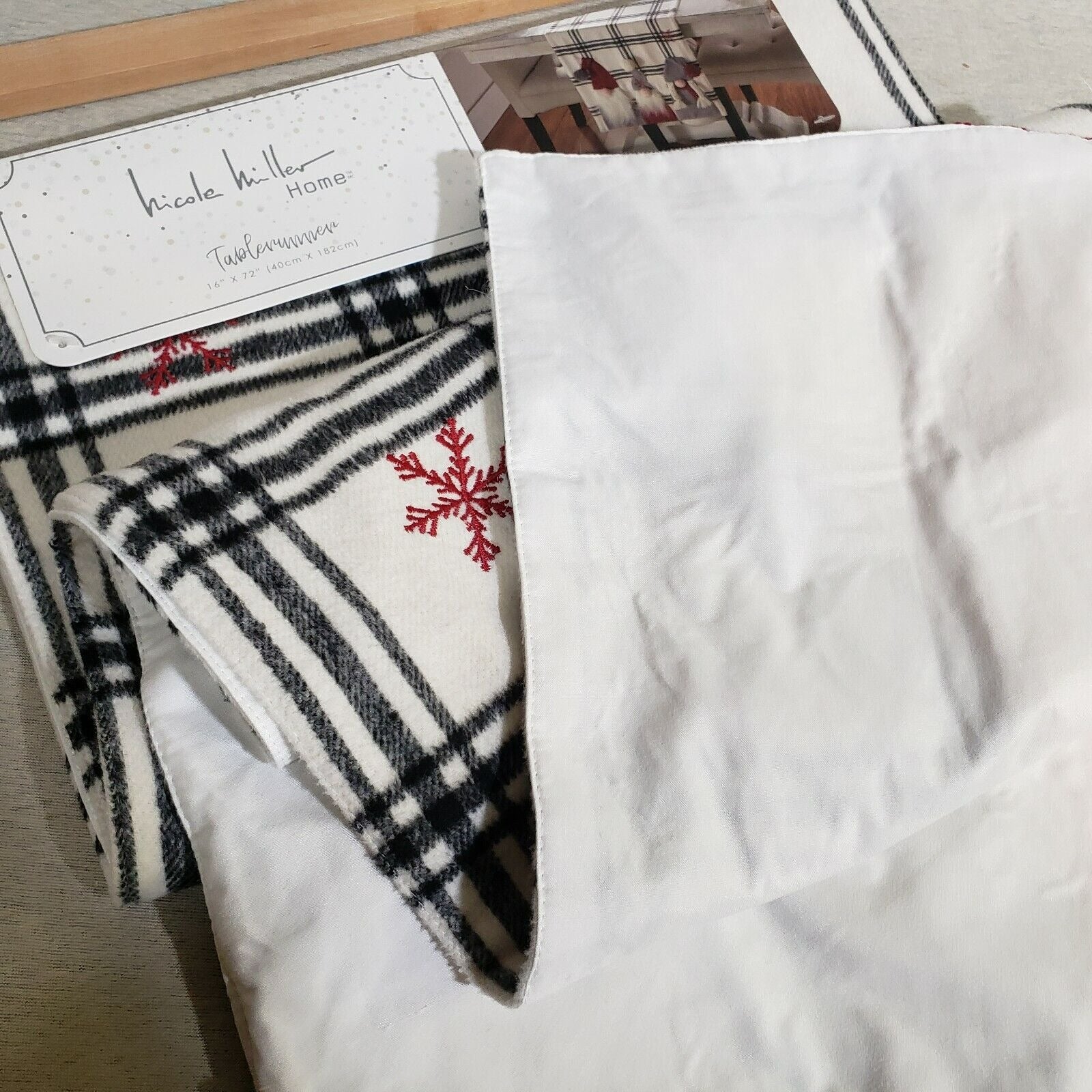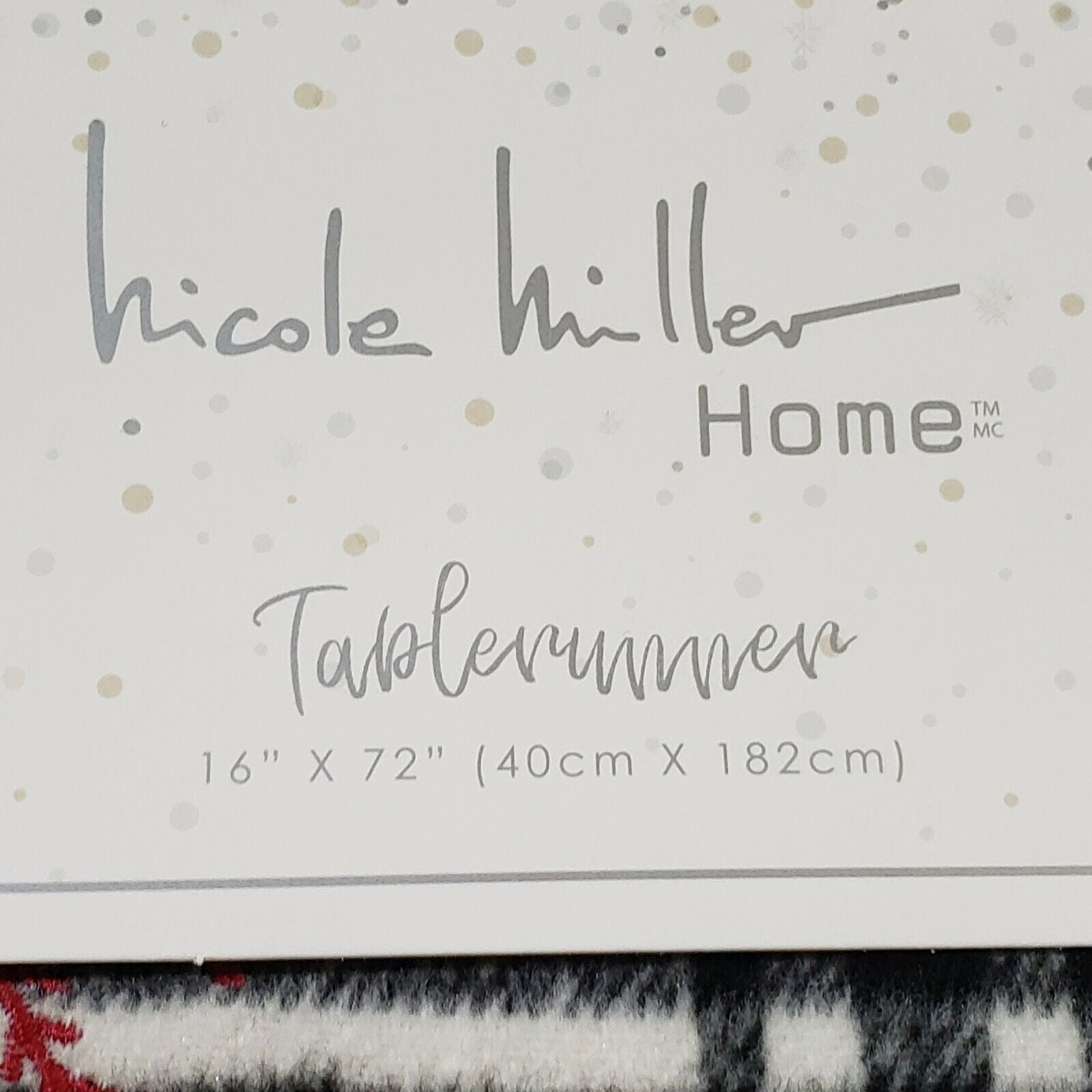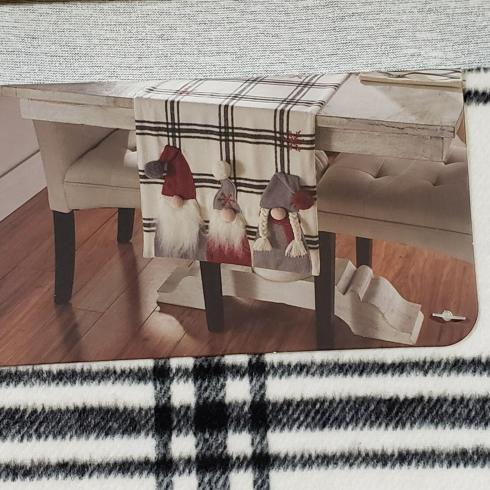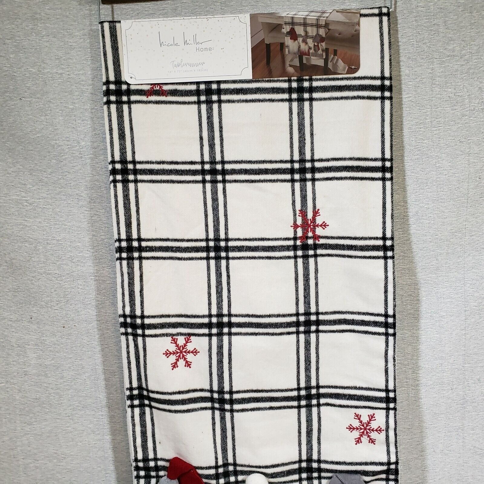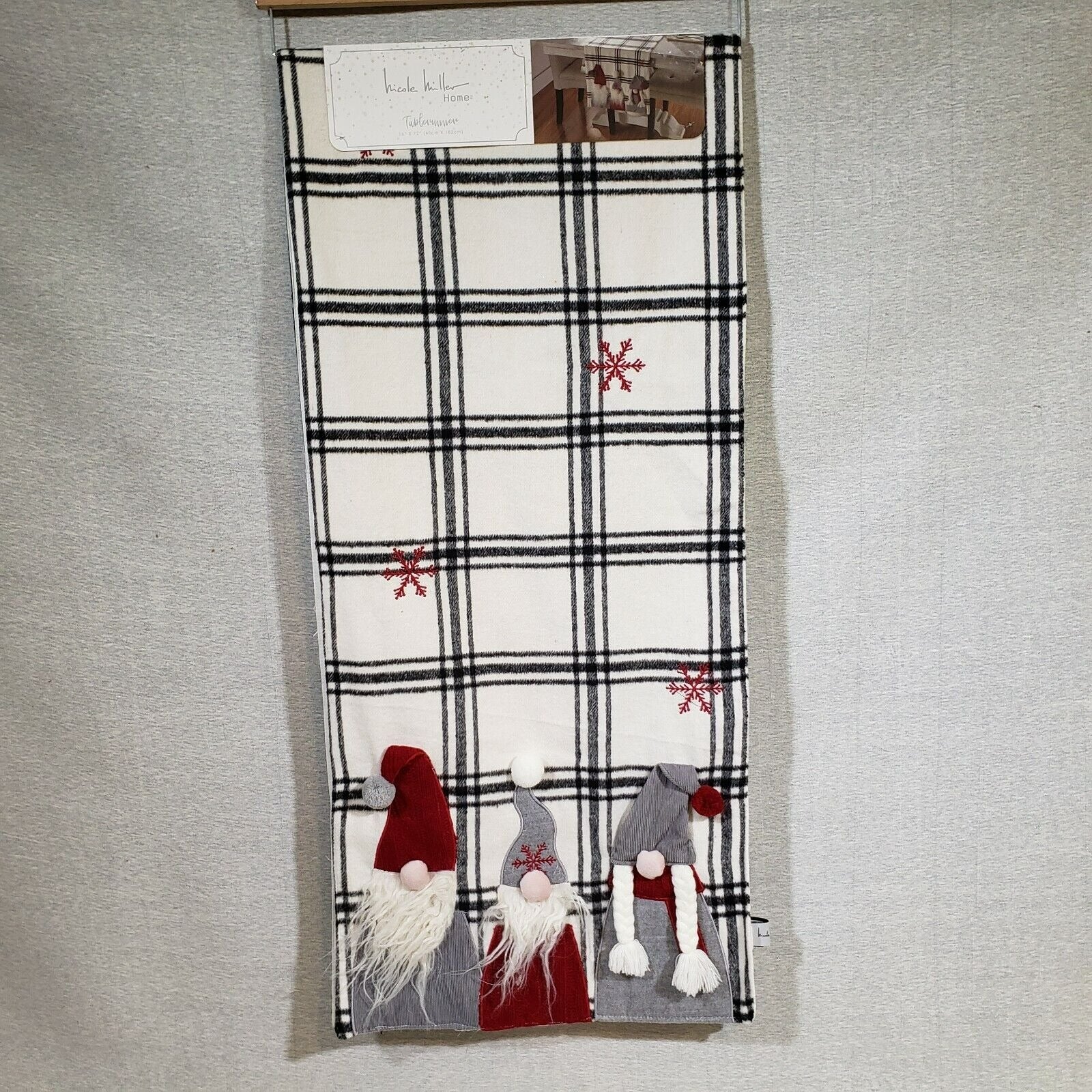 Nicole Miller Home Gnome Table Runner 72” X 16” Rare Black & White Flannel NWT