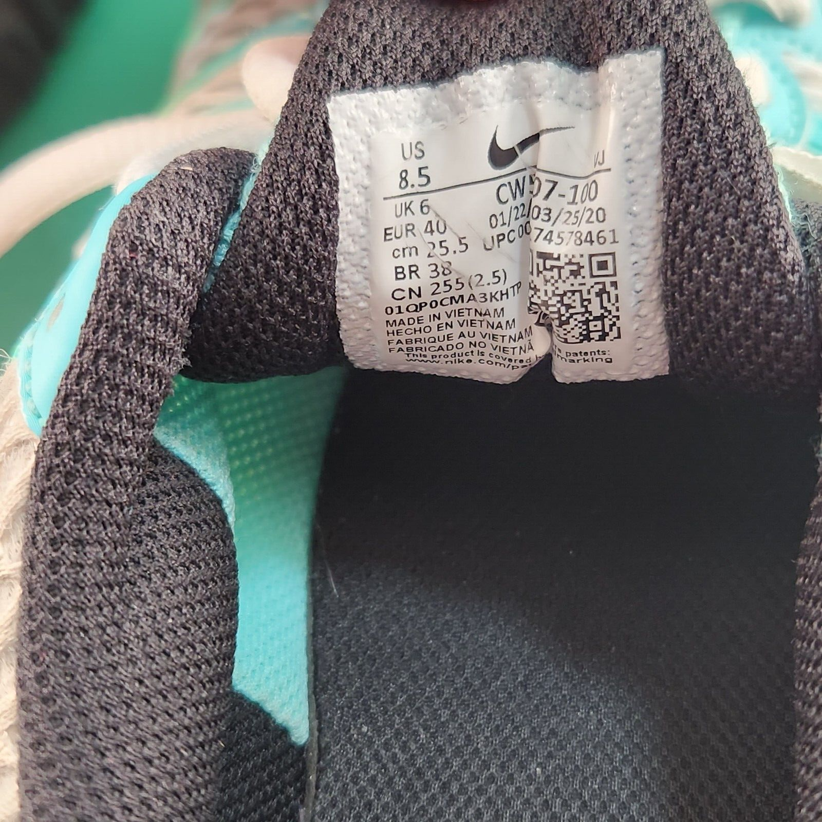 Nike Air Max Torch 4 Green Pink and Blue Shoe Women's Size 8.5 With Air Bubble