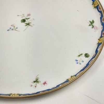 Nippon Morimura 12" Serving Plate Hand Painted Floral Blue Yellow Edge Vintage