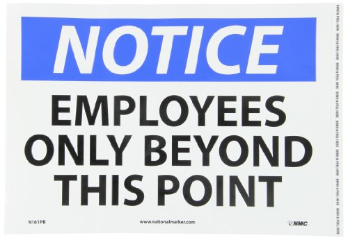 NMC N161PB NOTICE Employees Only Sign 14"x10" Vinyl OSHA Safety