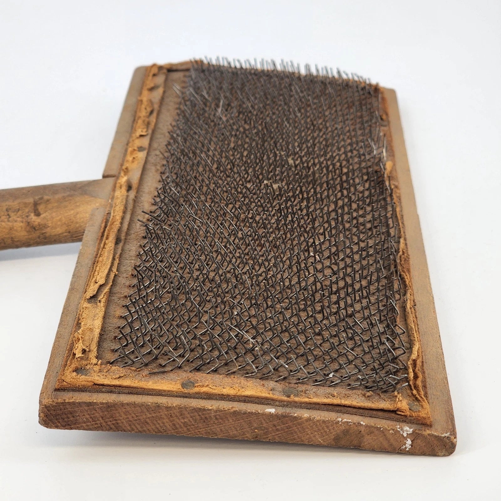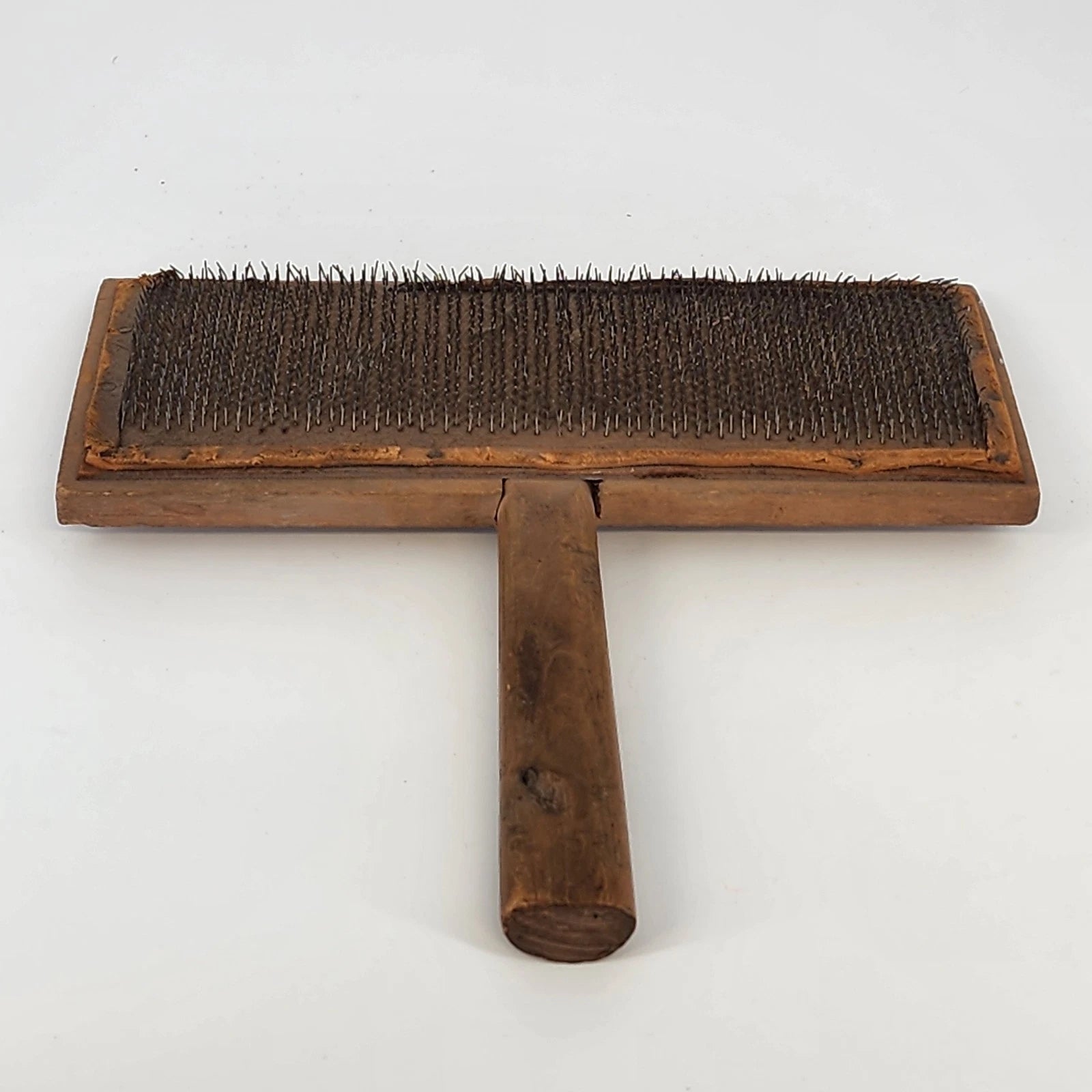 * Material: Wood handle with metal teeth on a leather/fabric base