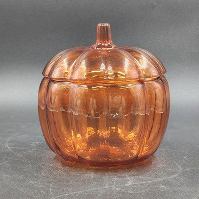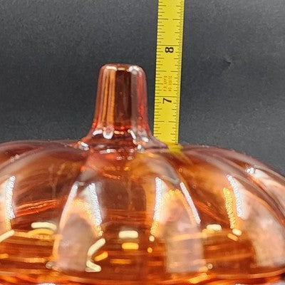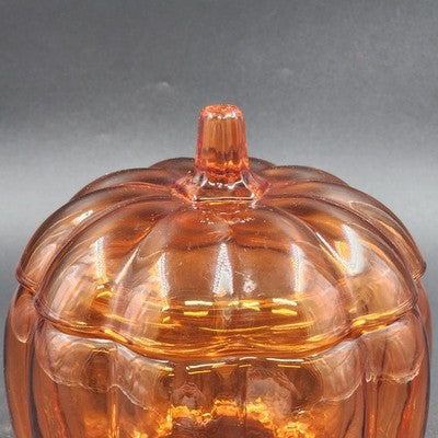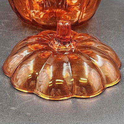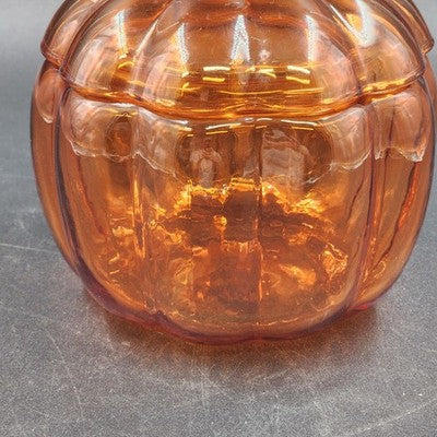 Orange Glass Pumpkin Shape Cookie Jar Candy Dish with Lid Anchor Hocking