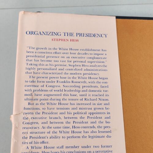 Organizing the Presidency by Stephen Hess 1976 1st Edition Vintage Hardcover