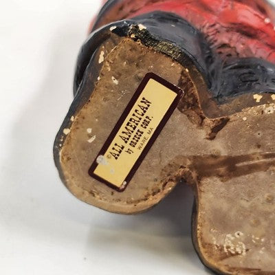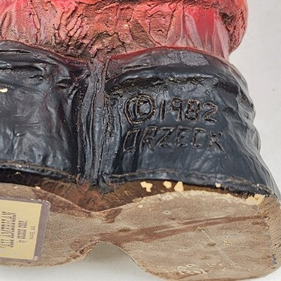 Vintage Orzeck All American Fireman figurine, dated 1982 and marked Ware, Massachusetts. A detailed ceramic/porcelain figure honoring fire fighters, standing 7 inches tall. Perfect for collectors of fireman memorabilia or vintage Orzeck figurines.
