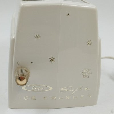 Get ready to chill your drinks in style with this Oster Snowflake Ice Crusher, Model 551. A countertop electric classic, it's designed for easy and efficient ice crushing-perfect for parties, cocktails, or everyday refreshment. Please note: base tray is not included.