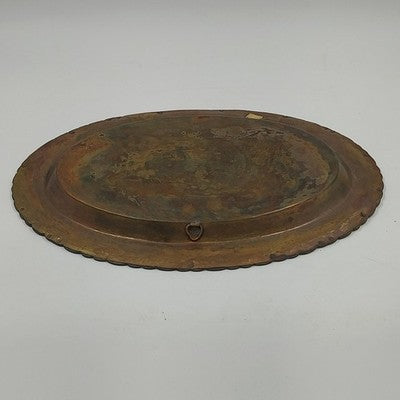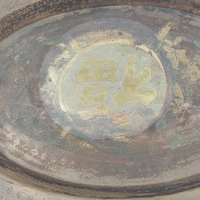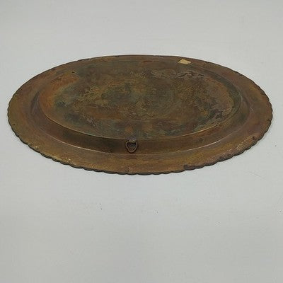 Oval Brass Serving Tray 16.25" Etched BLESSING Patina Hong Kong Mid Century