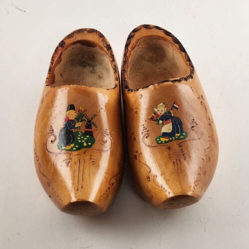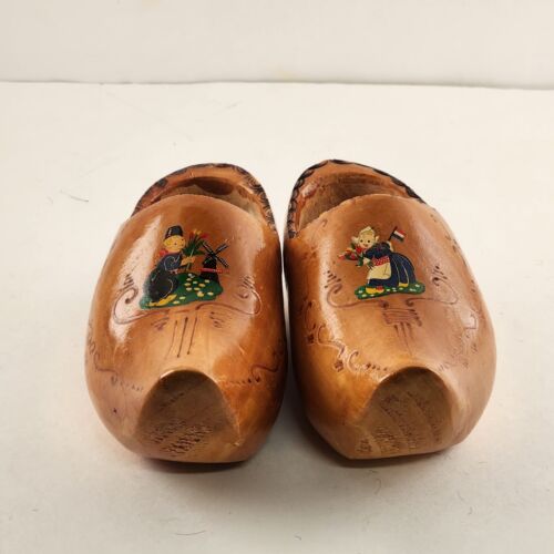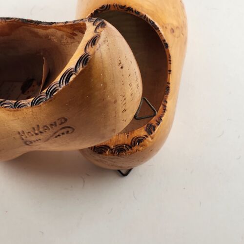 Pair Wooden Shoes Wall Hanging Small Dutch Holland Carved Planters 2 Pc 1960s