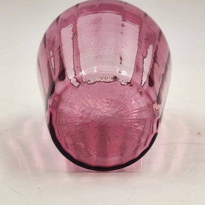 Whether you're curating a vintage glass collection, dressing up a side table, or looking for a unique mid-century inspired gift, this Pilgrim cranberry ribbed vase delivers both form and timeless function.