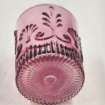 Pilgrim Glass Adams Cranberry Old Fashioned Glass – Engraved Damask Pattern | 3.5" x 4" Vintage Double Tumbler | Elegant Barware