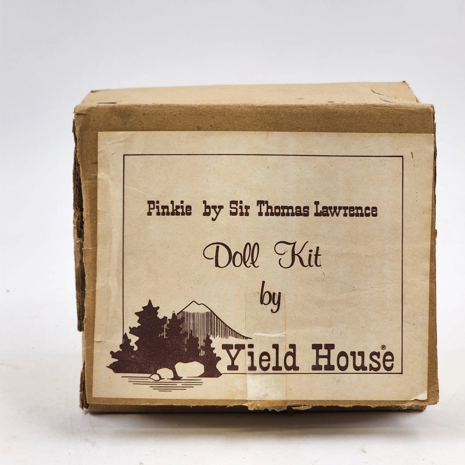 This vintage "Pinkie" Bisque Doll Kit by Sir Thomas Lawrence from Yield House includes a bisque head, arms, legs, and pattern for doll making. A charming collectible kit inspired by the famous portrait "Pinkie," perfect for doll artisans and collectors.