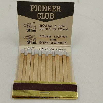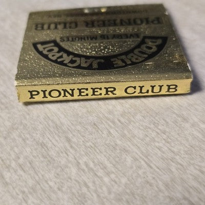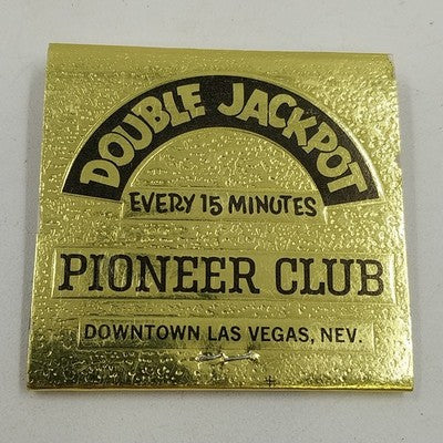 Step back into the golden age of Downtown Las Vegas with this vintage Pioneer Club Casino matchbook. Featuring the iconic Vegas Vic cowboy, this collectible celebrates the Pioneer Club and its famous Double Jackpot action. The matchbook remains full and unstruck, making it an excellent addition to any casino, advertising, or matchbook collection.