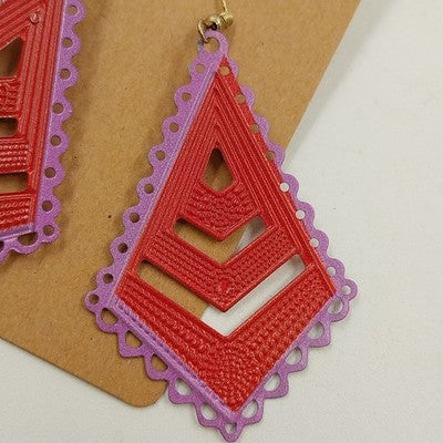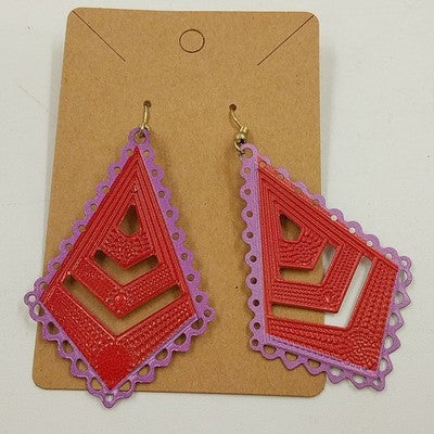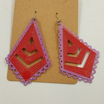 Plunder Red & Purple Tone Geometric Kite Shaped Mollie Filigree Dangle Earrings