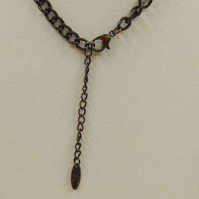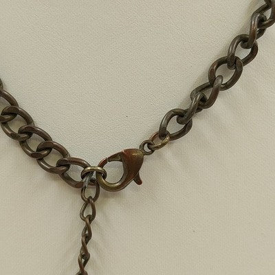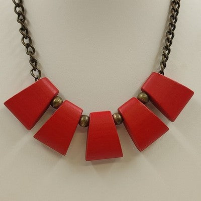 Make a bold yet earthy statement with this Plunder necklace featuring red wood rectangular pendants suspended from an antique gold tone cable chain adorned with decorative beads. The design is finished with a lobster clasp and a 3-inch extension chain for a customizable fit.