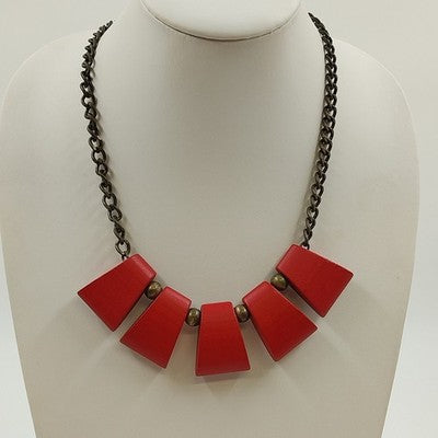 Plunder Red Wood Pendant with Antique Gold Tone Chain & Beads Necklace Jewelry