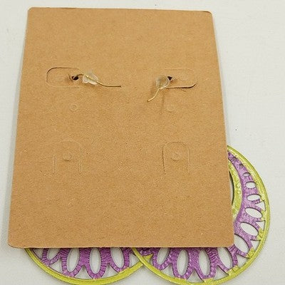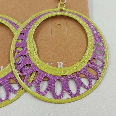 Plunder Sally Lime Green Purple Round Filigree Spring Dangle Drop Earrings 2"