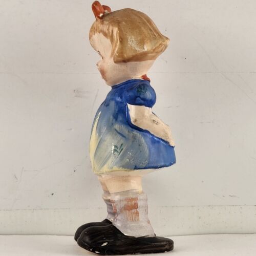 Porcelain Girl Figurine Carrying Flowers with Daddy's Slippers Unmarked 5" 1950s