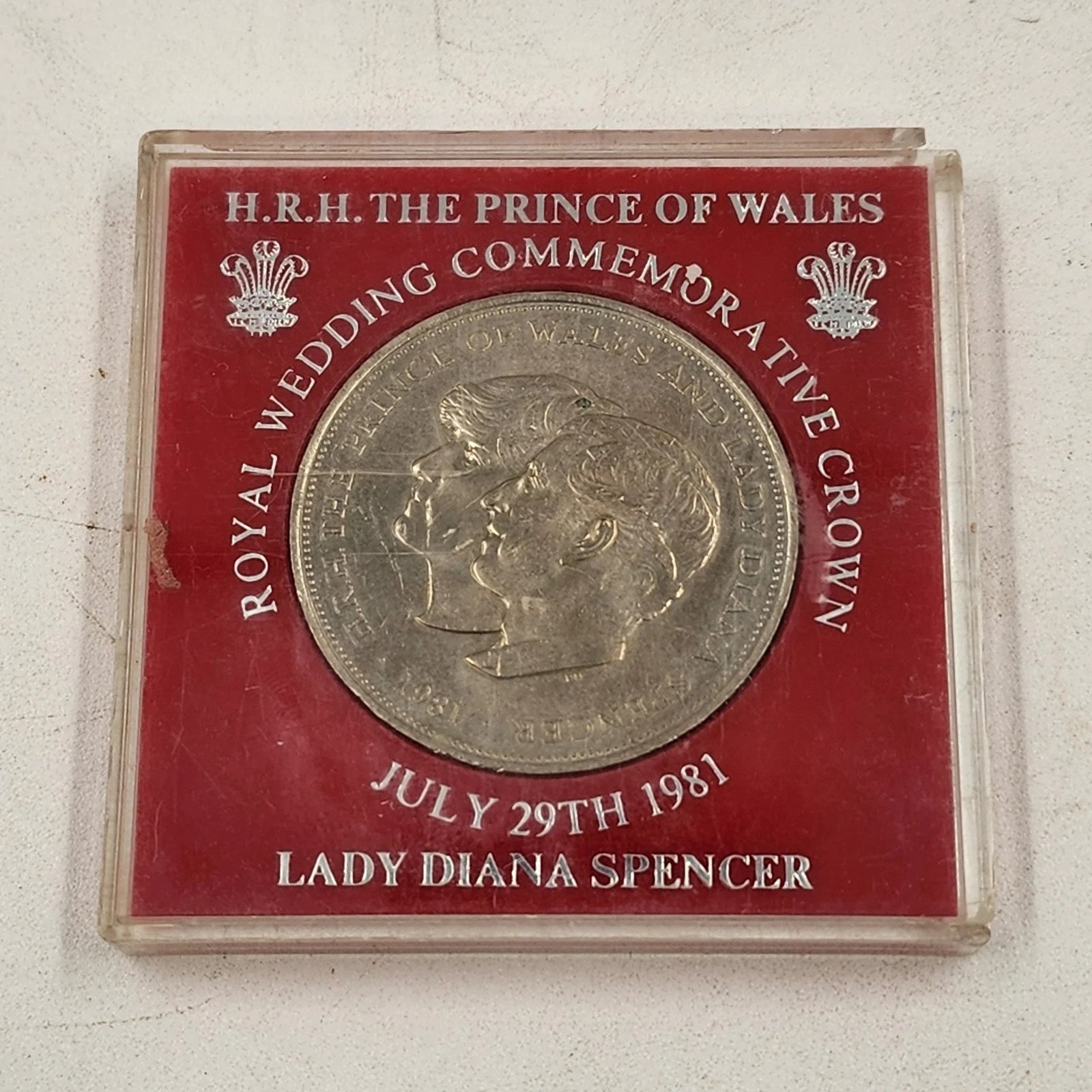 This is an official British Commemorative Crown minted to celebrate the wedding of HRH the Prince of Wales (now King Charles III) and Lady Diana Spencer on July 29, 1981.