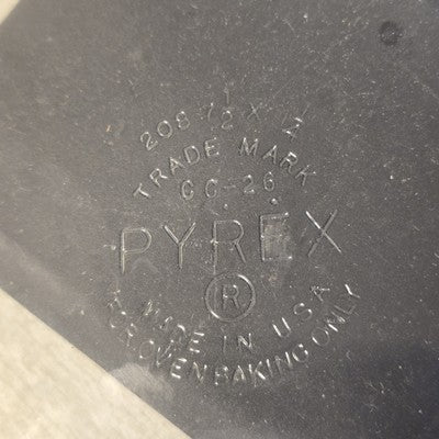 This vintage Pyrex CC-26 208 lid measures 8.5 inches in diameter and is designed to fit compatible casserole or baking dishes. Made of clear glass, it's marked "For Oven Use Only," making it perfect for vintage cookware collections or replacements.