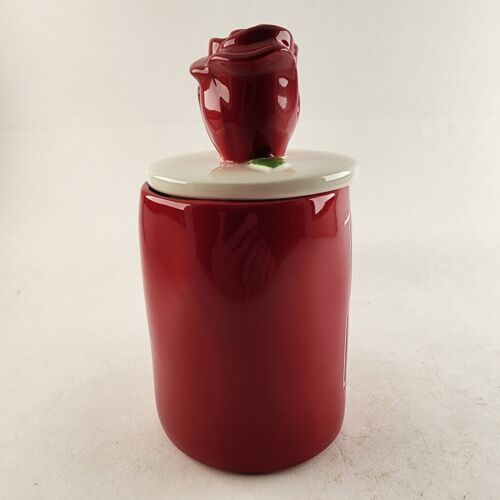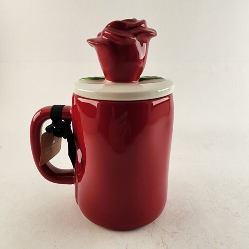 Rae Dunn Disney Princess Red Mug with TRUE LOVE Inscribed White Lid w Red Rose