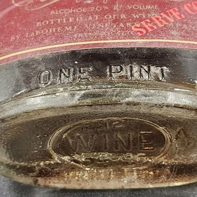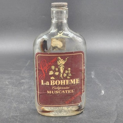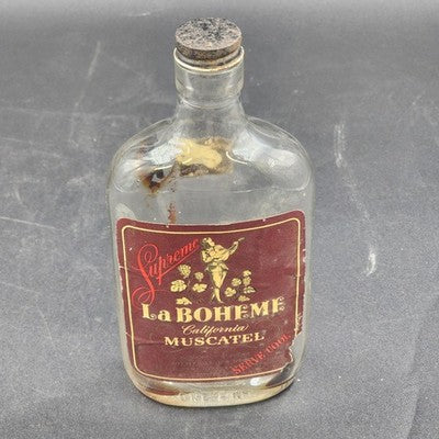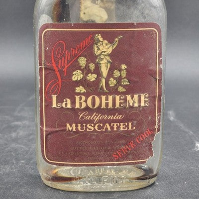 Rare Empty Supreme La Bohème California Muscatel Pint Glass Bottle Paper Labels