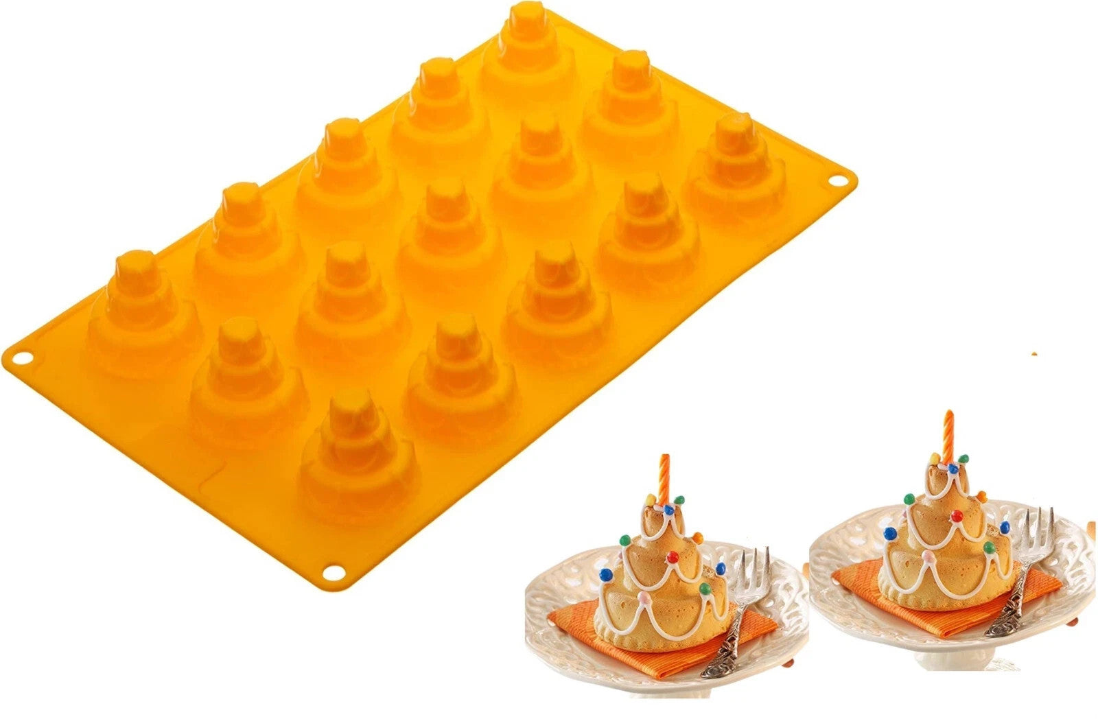 Celebrate in style with this versatile RBV Birkmann silicone mold, perfect for baking or freezing 15 mini birthday cake-shaped treats! Made in Germany, this non-stick yellow mold is ideal for chocolates, mini cakes, ice, gelatin, or fondant. Flexible and easy to clean, it guarantees effortless results every time.