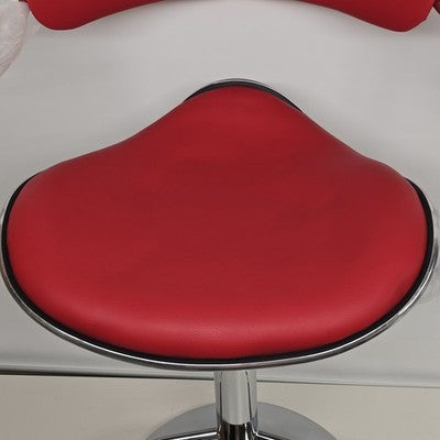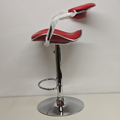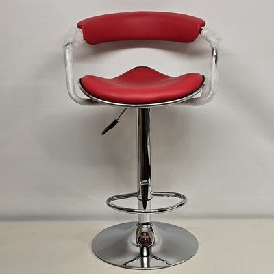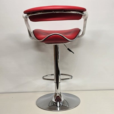 The Red Vinyl Bar Stool is a stylish and modern addition to any home or bar setting. This single stool features a solid red color with a contemporary design, perfect for adults to comfortably sit and relax. The stool has a swivel feature and comes with a cushioned seat and back, making it a comfortable and functional piece of furniture. With a metal frame and faux leather upholstery, this stool is durable and easy to maintain. Perfect for indoor use, this bar stool can be adjusted to various counter to bar heights for added convenience.