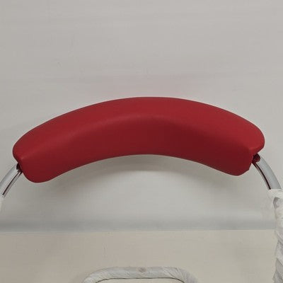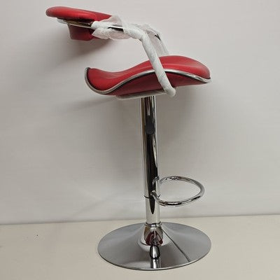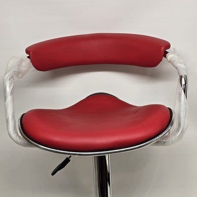 Red Adjustable Height Vinyl Bar Stool with Arms Chrome Footrest Pneumatic NOS