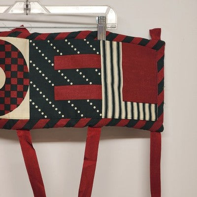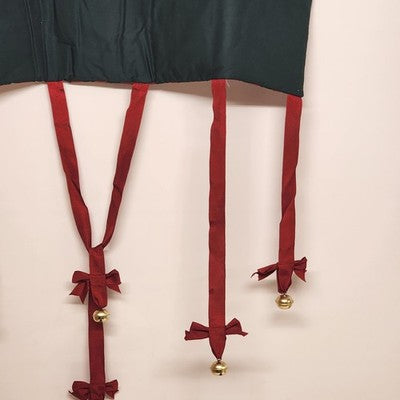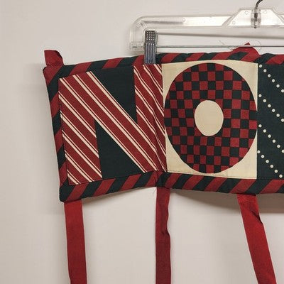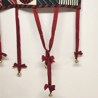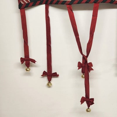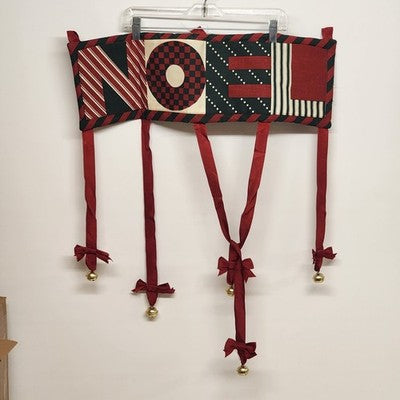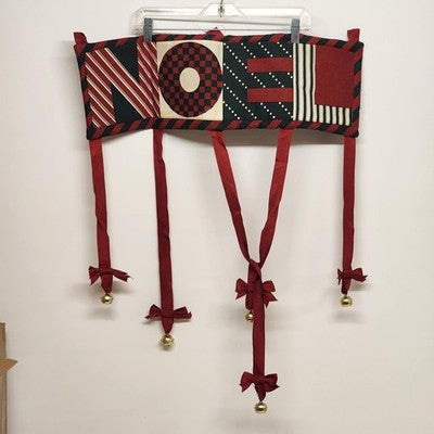 Red Black NOEL Wall Hanging Christmas Holiday Red Bows with Gold Bells 24.5"x9"