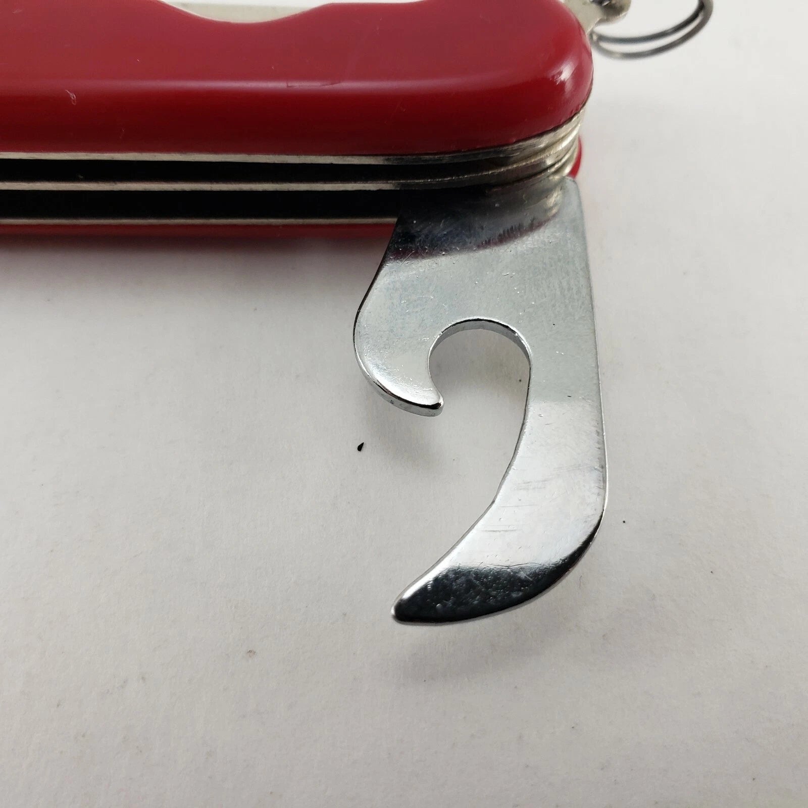 5 tools: knife blade, can opener, bottle opener, punch, screwdriver, and corkscrew
